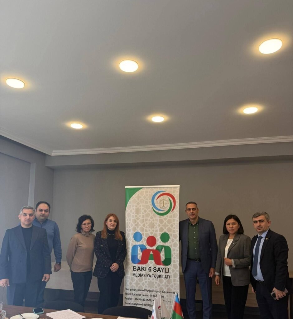 16 yanvar 2026-cı il tarixində Bakıda səfərdə olan Qırğızıstan Respublikasının nümayəndə heyəti Bakı 6 saylı Mediasiya Təşkilatının fəaliyyəti ilə yerində tanış olub. Görüşdə Qırğızıstan nümayəndə heyətinin üzvləri Zarina Qosaliyeva və Nuraim İslamova, Bakı 6 saylı mediasiya təşkilatının direktoru Tural Şahbazov və Fərid İmanov, mediatorlar Elçin Həsənov, Səidə Nağıyeva və Bəxtiyar Atakişiyev iştirak edib.Təşkilatın direktoru Tural Şahbazov qonaqları təşkilatın mediasiya sahəsində gördüyü işlər, fəaliyyət istiqamətləri, mediasiya prosesləri və tətbiq olunan praktiki mexanizmlər barədə ətraflı məlumatlandırıb.Görüş çərçivəsində tərəflər arasında mediasiyanın mübahisələrin sülh yolu ilə həllində rolu, bu sahədə institusional təcrübə, ictimai maarifləndirmə fəaliyyəti və beynəlxalq əməkdaşlıq imkanları ətrafında fikir mübadiləsi aparılıb.Eyni zamanda, mediasiya təcrübəsinin müxtəlif ölkələrdə tətbiqi, hüquqi mühitin təkmilləşdirilməsi, qarşılıqlı təcrübə mübadiləsi və gələcək əməkdaşlıq perspektivləri müzakirə olunub. Görüş qarşılıqlı maraq doğuran mövzular ətrafında konstruktiv və işgüzar şəraitdə keçib.