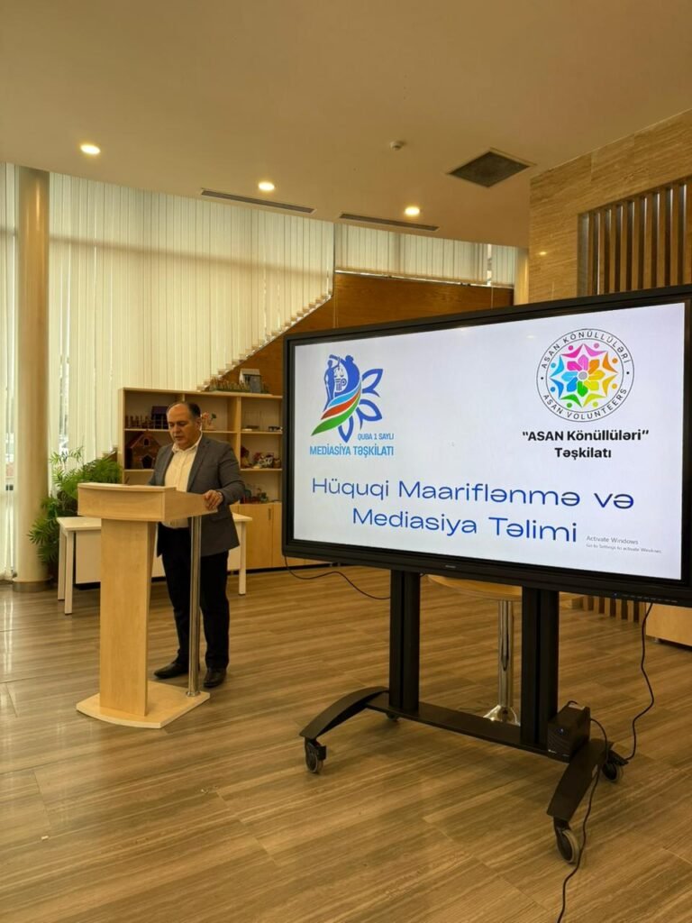 Bu gün Quba ASAN Xidmət Mərkəzinin Təlim-tədris binasında ASAN Könüllüləri ilə insan hüquqları və mediasiya mövzusunda əhatəli maarifləndirici görüş keçirildi.Görüş Quba 1 saylı MT-nin direktoru, hüquqşünas-mediator Hümmət Əliyev tərəfindən aparıldı. O, iştirakçılara insan hüquqlarının tarixi inkişafı, beynəlxalq hüquqi sənədlər, hüquqların müdafiəsi mexanizmləri və mediasiyanın mübahisələrin sülh yolu ilə həllində rolu barədə geniş məlumat verdi.